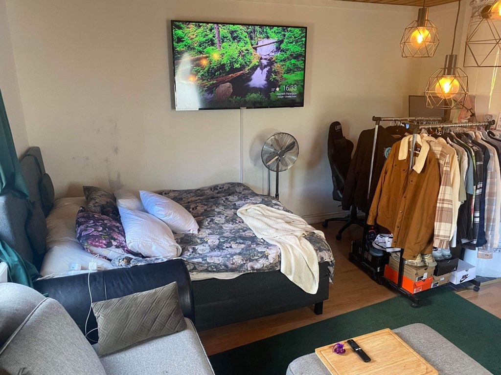 - Kombinerat sov-/vardagsrum med gott om plats för både säng och soffhörna
